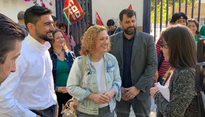 Los candidata a la Alcaldía de Sevilla por la confluencia Podemos-Izquierda Unida, Susana Hornillo, y el candidato número 2, Ismael Sánchez, han manifestado su apoyo a las familias del CEIP Adriano (Pino Montano) concentradas contra la decisión del Gobierno de la Junta de Andalucía de eliminar una línea educativa de alumnos de tres años en el próximo curso y fusionar escolares de tres y cuatro años en la misma aula.