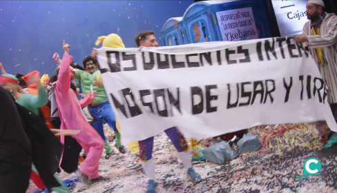 Varios componente de la chirigota sacaron una pancarta donde se podía leer que "los docentes interinos no son de usar y tirar". Y es que enero y febrero han estado marcados por las protestas convocadas por el Sindicato Independiente de Interinos Docentes en Andalucía. La organización ha llevado a cabo jornadas de huelga y varias concentraciones para mostrar su descontento.