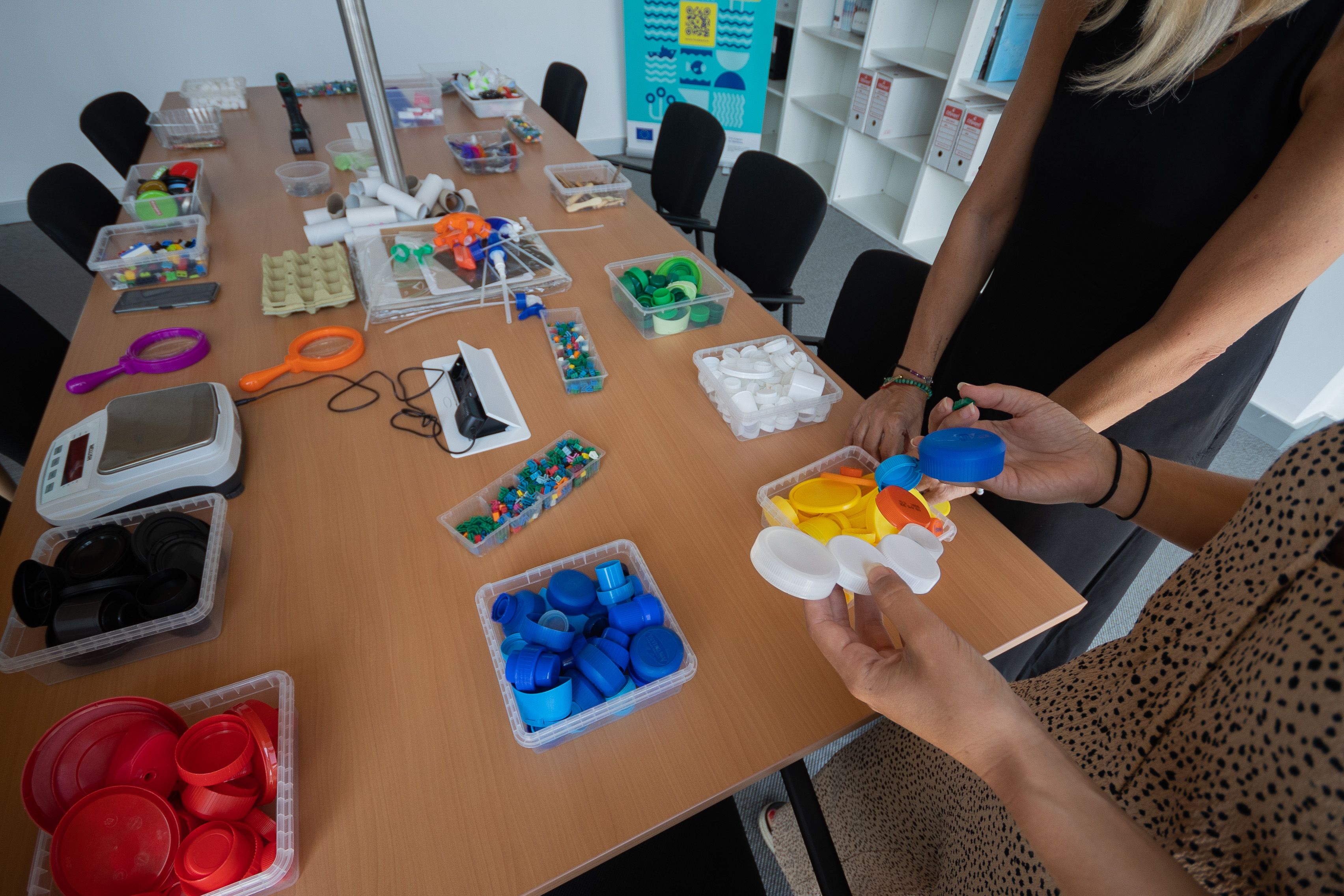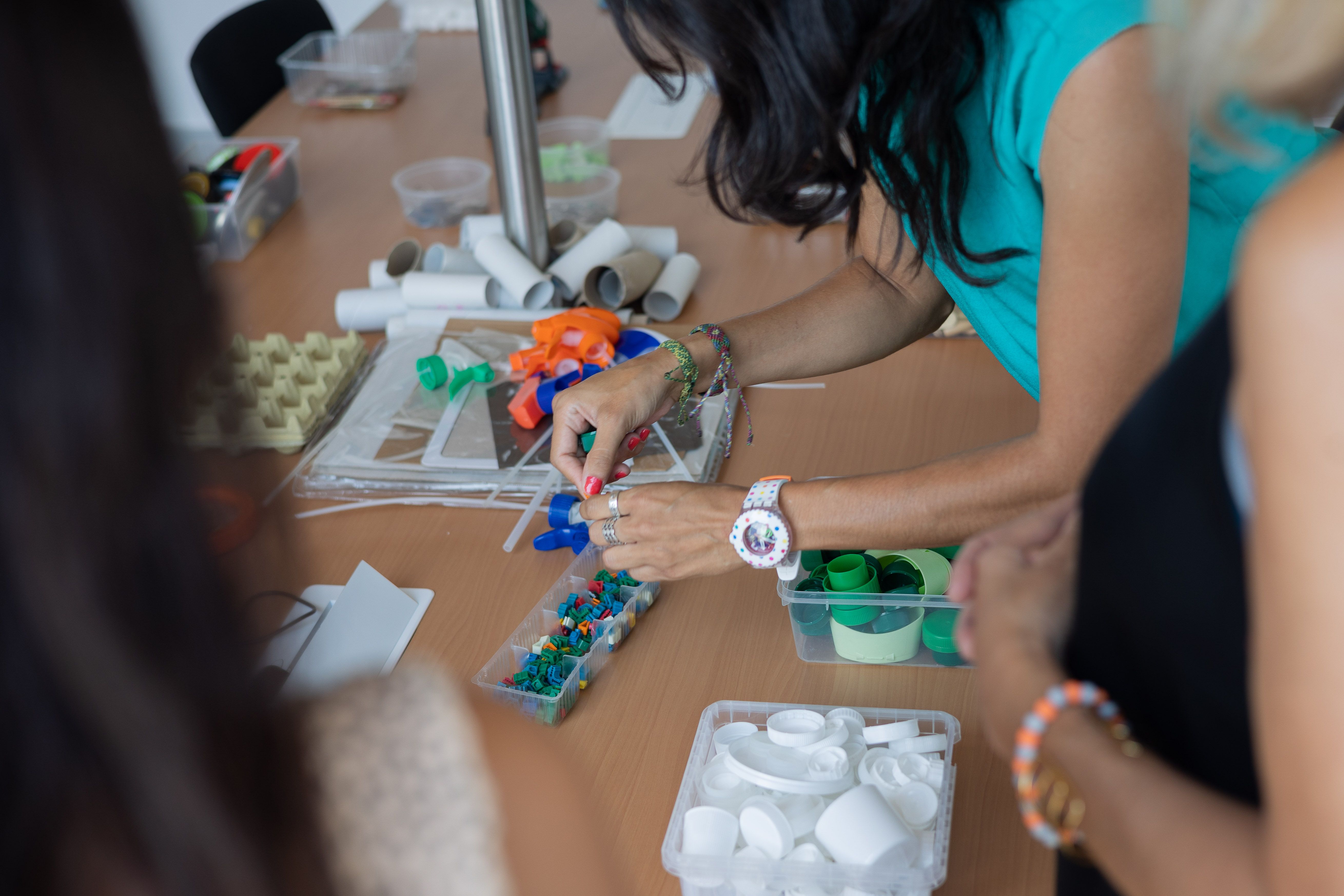 La bioingeniera ha creado una metodología diferente con la que busca calar en las personas. En lugar de usar libros, recoge tapones, plumas, piedras, plásticos o corcho que suelen acaban flotando en el mar. “Invito a las personas a que construyan piezas y así enseño a evaluar los impactos ambientales de un producto y la huella que dejan”, explica.