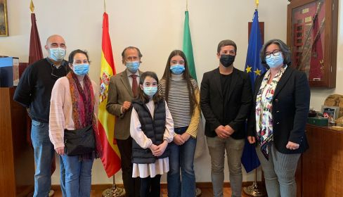 El alcalde de Chiclana, José María Román, ha recibido a la estudiante Rocío Junquera García, que ha sido becada por la Fundación Amancio Ortega. Un acto en el que también han estado presentes el delegado municipal de Educación, José Alberto Cruz, así como familiares y amigos.