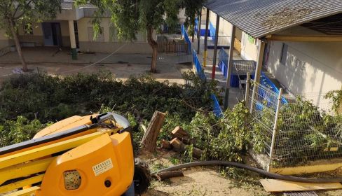 "Debido a la caída de ese murete había una serie de árboles que tenían peligro de caída y se han apeado. De hecho estábamos todavía trabajando para retirar las ramas, troncos y demás. Esperamos que esta semana quede la zona limpia para que los niños puedan estar en el patio y ya se está montando el expediente para para poder hacer un proyecto y poder acondicionar un murete, un poyete o una pequeña grada que sirva para contener de forma segura la zona jardinada y que los niños también lo puedan utilizar adecuadamente", finaliza.