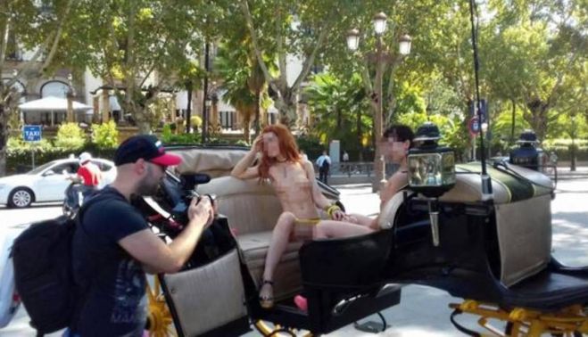 El Ayuntamiento de Sevilla ha abierto una investigación después de que hayan circulado por redes sociales imágenes de mujeres desnudas siendo grabadas en un coche de caballos por calles céntricas de la ciudad, como el entorno de la Puerta de Jerez. Fuentes municipales han explicado que ya está investigando lo sucedido, cuando se detectaron las imágenes que circulaban en las redes sociales. Hasta ahora se ha localizado y abierto una investigación al titular de un coche de caballos empleado para las imágenes, y se comprobará si puede haber incurrido en alguna infracción, según han añadido las mismas fuentes.