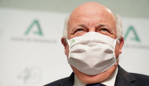 El consejero andaluz de Salud y Familias, Jesús Aguirre, ha lucido esta semana, en una comparecencia conjunta con el vicepresidente Juan Marín, el nuevo logo de la Junta de Andalucía en una mascarilla. La A de color verde sustituyó hace unos meses al triángulo con dos arcos de medio punto, en una renovación de su imagen corporativa en la que invirtió 14.500 euros, coincidiendo con la conmemoración del 40 aniversario de la celebración del referéndum del 28 de febrero de 1980.