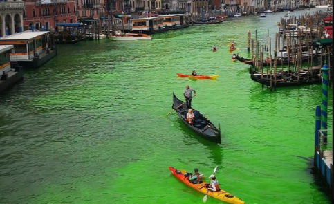 🇮🇹 | El agua del Gran Canal de #Venecia se tiñe de verde y nadie sabe por qué.