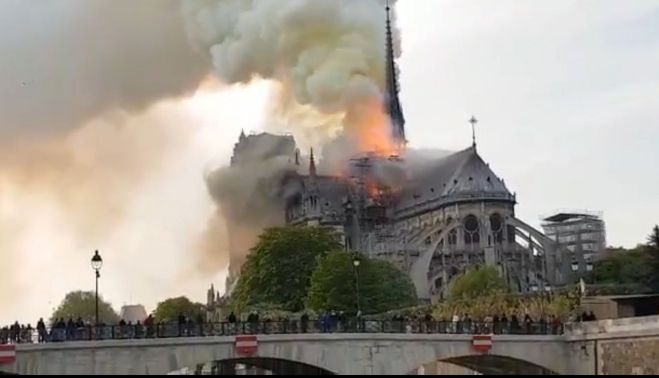 Una columna de humo sobre el cielo de París alerta de un gran incendio: la catedral de Notre Dame, uno de los símbolos de la ciudad francesa y del país galo, se está incendiando.Un despliegue importante de bomberos están intentando controlar llamas, que derivan de la aguja central del templo, al parecer originado sin intencionalidad en las labores de rehabilitación que se estaban haciendo. El fuego se inició aproximadamente a las seis de la tarde.