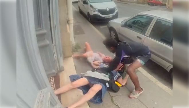 Agarra a la niña por la muñeca y la arroja por la acera, agarrando objetos sueltos del suelo antes de salir corriendo. Según Infos Bordeaux, el agresor anónimo es conocido por la policía y fue arrestado.
