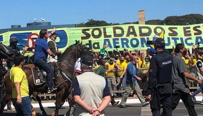Después de media hora estrechando la mano a algunos de sus acólitos reunidos alrededor del Palacio de Planalto, en Brasilia, Bolsonaro ha montado en un caballo de la Policía Militar y se ha dado un baño de multitudes antes de volver a su coche oficial para abandonar la manifestación.