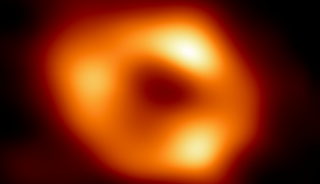 En varias ruedas de prensa simultáneas celebradas en distintos países, los investigadores han dado a conocer la histórica fotografía de este agujero negro supermasivo, llamado Sagitario A*, conseguida a partir de una red de ocho observatorios situados en distintos puntos del mundo; en ella se observa un anillo no perfectamente esférico amarillo y naranja, con tres puntos más brillantes.