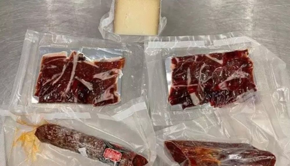 En concreto, el joven habría llevado en su maleta sin declarar un kilo de carne de cerdo cruda, que incluía dos envases de jamón, un envase de chorizo y otro de caña de lomo. Además, también había viajado con una cuña de queso.