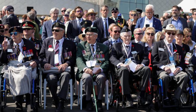 También han estado presentes unos 200 veteranos, últimos supervivientes de las decenas de miles de soldados que arriesgaron sus vidas en las playas de Normandía. El término Día D era el código militar para el comienzo de una operación importante, siendo la primera D la abreviatura de Día. La frase Día D se utilizaba con bastante frecuencia antes de la invasión aliada, pero después ambas se convirtieron en sinónimos y ahora se entiende comúnmente que el Día D se refiere al comienzo de la Operación Overlord.