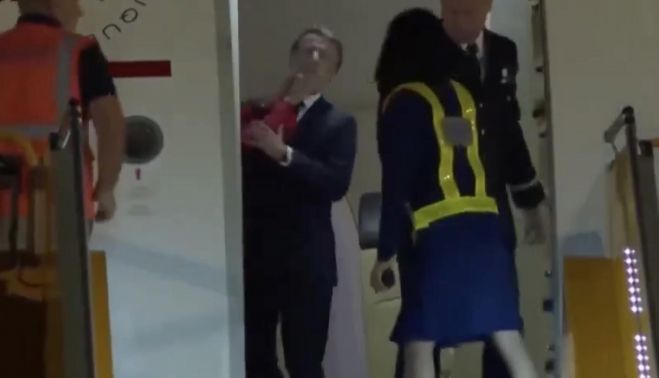 El pasado domingo 25 de mayo, durante la llegada oficial de Emmanuel Macron y Brigitte Macron al aeropuerto de Hanoi para su visita a Vietnam, un video grabado y difundido por la agencia Associated Press rápidamente generó especulaciones en internet. En las imágenes, se ve a Emmanuel Macron aún dentro del avión, mientras se abren las puertas. Es entonces cuando aparecen los brazos de su esposa, que, sin ser vista por completo, levanta rápidamente las manos hacia el rostro del presidente.