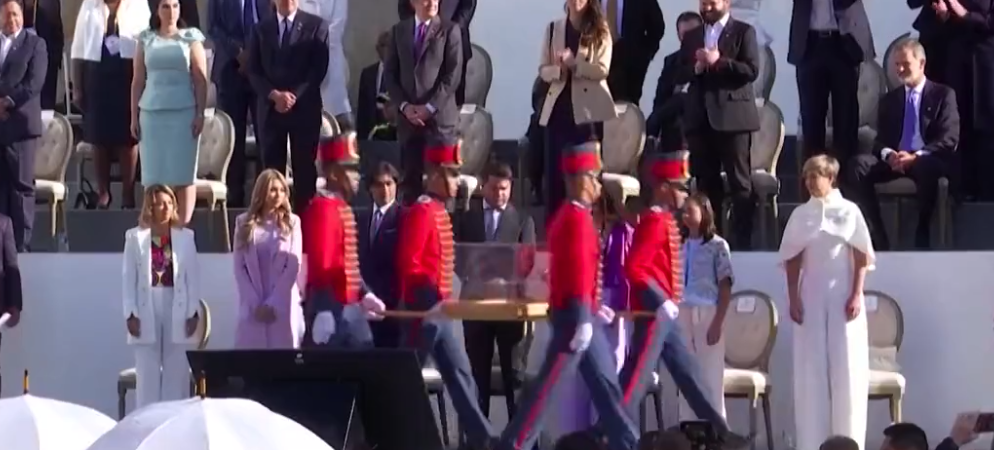 Unidas Podemos asegura que ponerse de pie frente a la espada es una señal "de respeto a un símbolo solemne que representa la independencia y la soberanía de varios países hermanos de Latinoamérica", añadiendo que, ante la "extrema gravedad" del asunto, consultarán al ministro de Asuntos Exteriores, José Manuel Albares, si el acto del Rey "estaba refrendado por el gobierno como exige la Constitución Española".