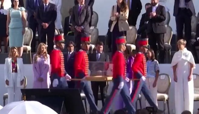 El portavoz de Unidas Podemos en el Congreso, Pablo Echenique, critica la "falta de respeto" del rey, al ser "el único que permanece sentado ante la espada de Bolívar, que representa la independencia y la soberanía de tantos pueblos latinoamericanos que ya no son vasallos". "Menuda falta de respeto. Luego que por qué gusta tanto este rey a los ultraderechistas de Vox", escribe en sus redes sociales.