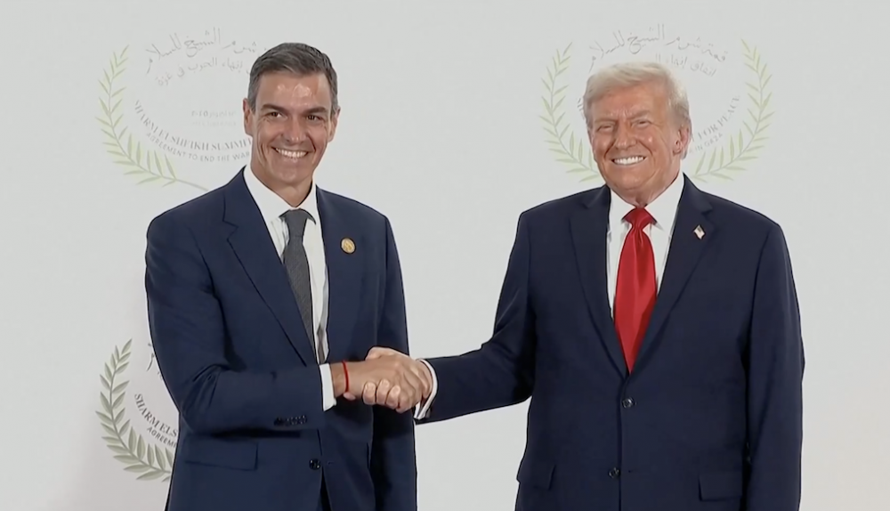 El presidente del Gobierno, Pedro Sánchez, y el presidente de Estados Unidos, Donald Trump, se han saludado este lunes con total normalidad durante la cumbre por la paz en Gaza celebrada en Sharm el Sheij (Egipto), apenas una semana después de que el mandatario norteamericano propusiera expulsar a España de la OTAN por, según dijo, “no invertir lo suficiente en defensa”.