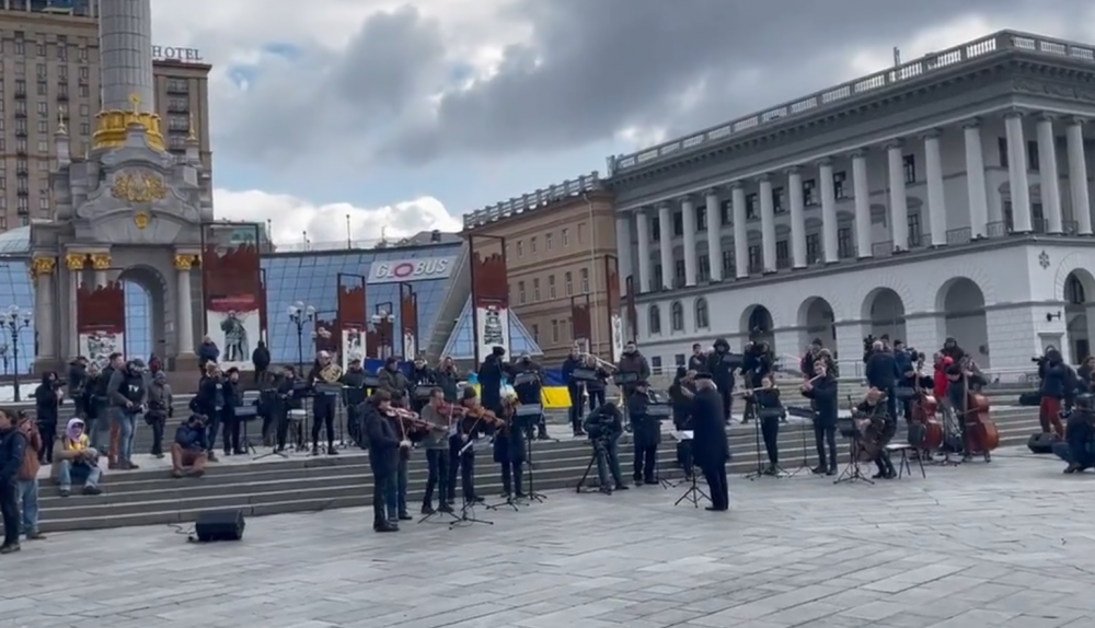 La Sinfónica de Kiev dirigida por Herman Makarenko es la orquesta que pone música en el centro de la capital ucraniana: "Tocamos hoy aquí para que no se destruya esta ciudad", han declarado desde la agrupación.