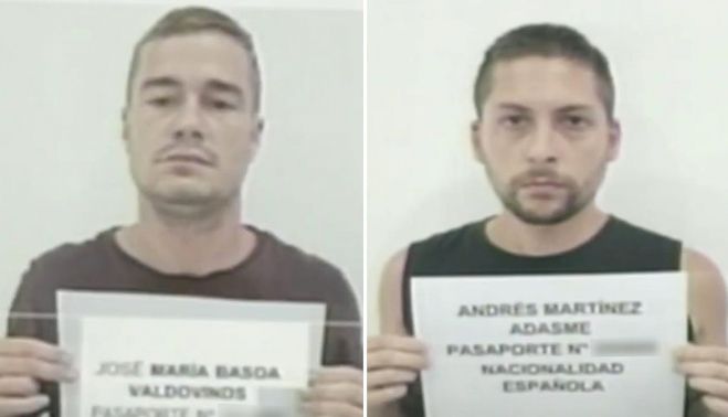 Imagen de la televisión estatal venezolana de los dos vascos apresados.