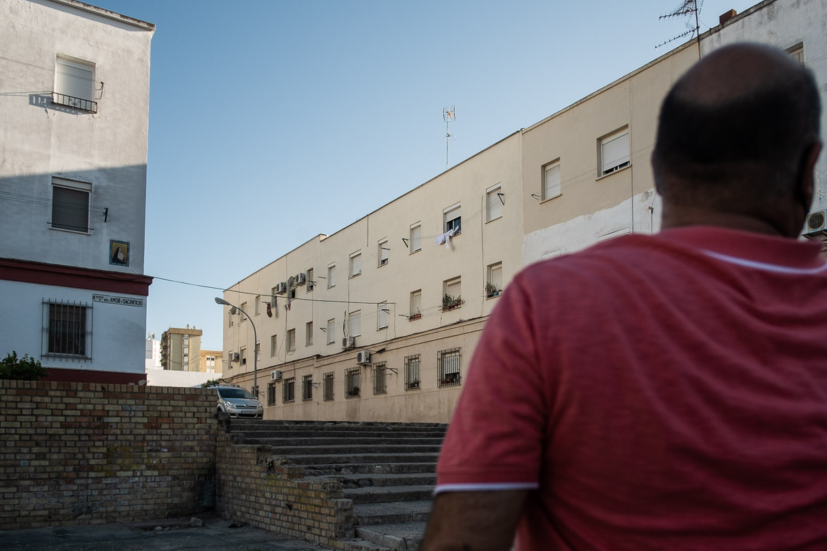 Ahora, la Junta de Andalucía ha culminado un proceso de renovación de zonas comunes de viviendas privadas. Tenorio no tiene queja ya. Han luchado mucho. "Ni el Gobierno que está ahora ni el anterior ni el Ayuntamiento, no tenemos queja". Todos han puesto de su parte. PP, Cs, PSOE, IU, cada uno en un tiempo en la Junta. Son casi seis millones de euros (en el programa ARI, Áreas de Rehabilitación Integral, para que la administración remoce lo que las comunidades de vecinos sin recursos no pueden costear). "Si se le hubiera dicho a la gente, yo creo que hoy todos firmarían tirarlo todo para hacer un bloque, está claro. Algo se habló, se propuso, pero estando protegidos la opción es las reformas". No es para menos. Uno que colinda con las pistas deportivas está hundido, aunque no en riesgo de derrumbe. "Se ve en las grietas. Tú pones una canica en el suelo y sale rodando".