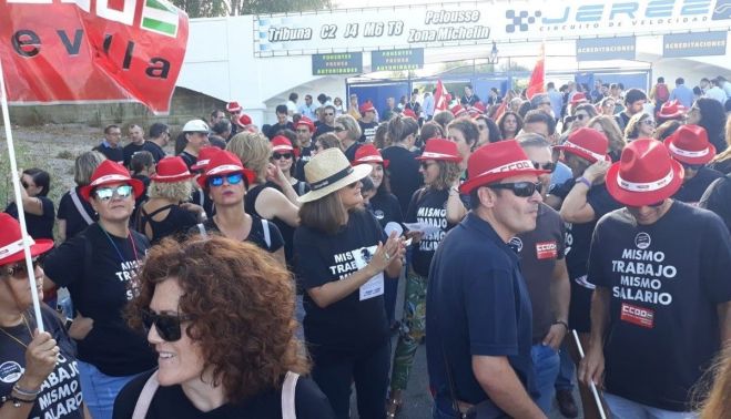 CCOO ha considerado que la manifestación convocada en el circuito de Jerez-Ángel Nieto, y que finalmente ha tenido lugar fuera de éste, ha sido secundada "masivamente" por la plantilla de Andalucía Emprende en contra de "la situación de discriminación salarial que afecta a 700 de las 945 trabajadores de la fundación", que se remonta a 2009.