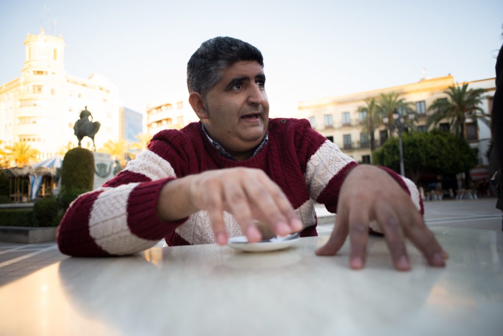 Licenciado en Filología Hispánica por la Universidad de Cádiz, Juan Carrasco fue uno de los despedidos en el arbitrario ERE que realizó el anterior gobierno municipal del Partido Popular. Hasta entonces trabajaba como ayudante en la biblioteca municipal de la ciudad y desde aquel momento se ha tenido que buscar las habichuelas porque "nadie le ha regalado nada". "Estuve dando clases, buscándome la vida, dando clases de apoyo en un colegio y más o menos sobreviviendo" hasta que encontró trabajo durante un tiempo en cursos de la Fundación Secretariado Gitano, asociación que hace una gran labor y dice conocer en profundidad. "He llevado a un grupo de dieciséis niños. Primero los formaba y luego los llevaba a las prácticas de empresa", sostiene. Pero sin embargo, "con cuidado por si había algún desliz, porque si lo hay ya no sería Antonio Pérez sino el colectivo, los gitanos, un estigma que se lleva", dice en referencia a la atribución de cualquier incidencia al grupo, algo que compara con el de otros colectivos como los inmigrantes.