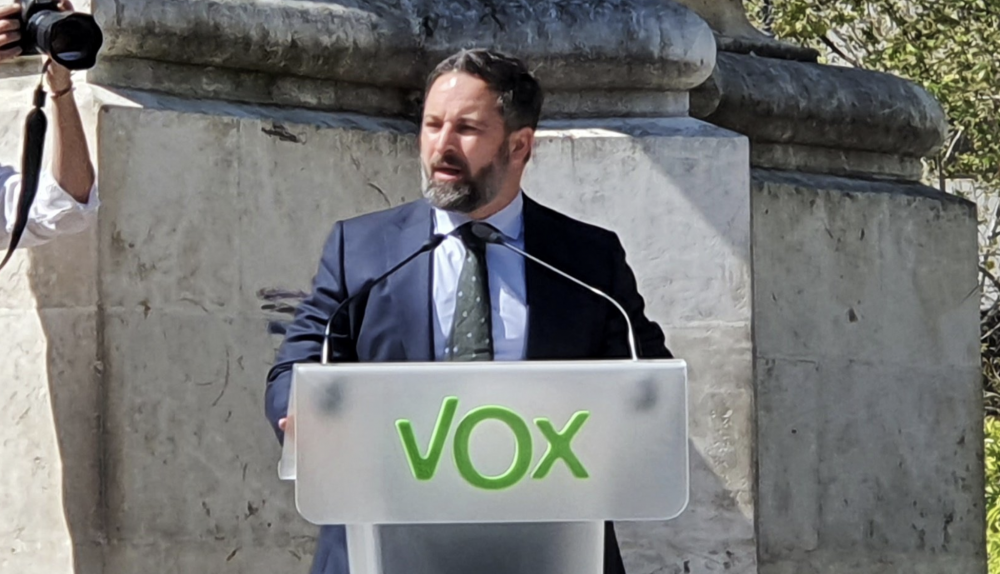 Así lo ha señalado el líder nacional de Vox en una convocatoria para la prensa y rodeado de unos 200 simpatizantes del partido en la Plaza Nueva de Sevilla, que la Policía Nacional ha acordonado previamente, algo que ha criticado Santiago Abascal.