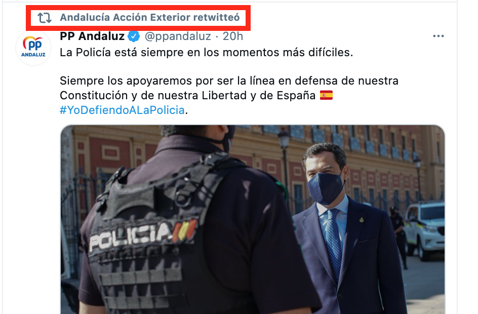 Y para colmo se usa la cuenta oficial de @ExteriorJunta para difundir posiciones políticas del PP. Nos vemos obligados a solicitar la comparecencia en la Comisión de Presidencia del Parlamento de Andalucía del Consejero del Elías Bendodo. pic.twitter.com/wBQCV8ymef