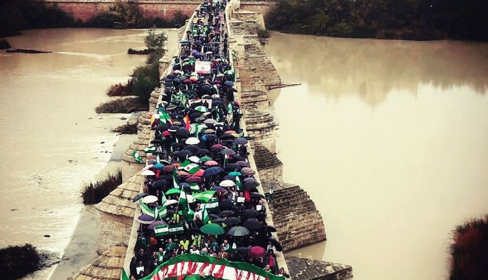 La manifestación 'Por una Andalucía viva' ha comenzado a las 12:00 horas desde la Plaza de Hiroshima y Nagasaki de Córdoba, en los conocidos como Jardines de los Patos, y ha concluido en el Puente Romano, donde se ha leído un manifiesto.