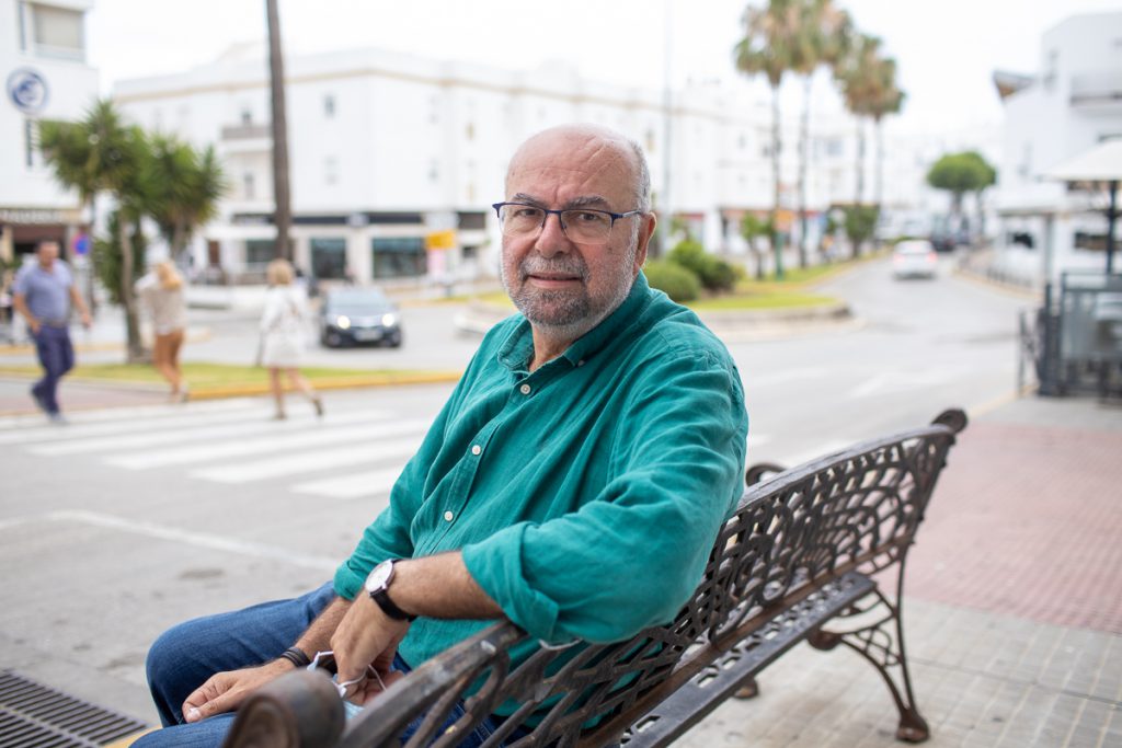 Antonio Roldán, sentado en un banco de Conil. FOTO: JUAN CARLOS TORO