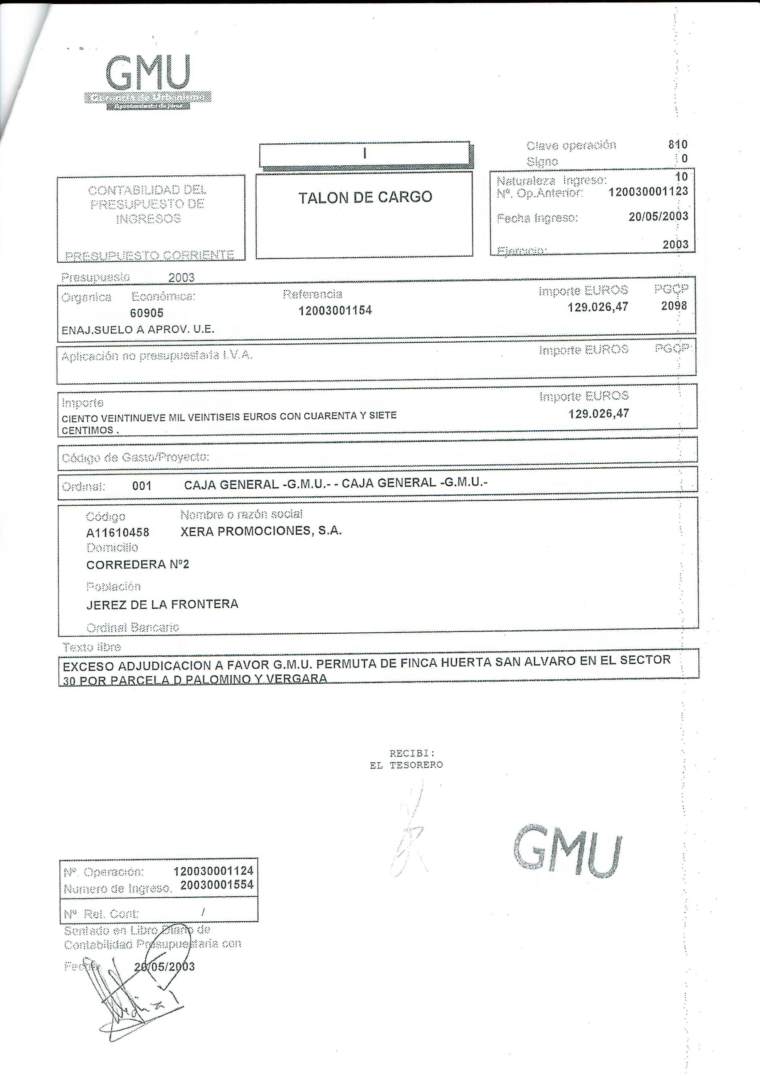 La operación consistía en que la GMU permutaba esos terrenos, valorados en 610.027,28 euros, por los casi mil metros para oficinas de la bodega denominada Palomino y Vergara, situada en el centro (calle Nuestro Padre Jesús de la Flagelación) y con un valor de 481.000,81 euros. La diferencia entre ambas cantidades, 129.026 euros, era una ecuación favorable a las arcas municipales que debía abonarse en el momento de la rúbrica del convenio, como este mismo recogía. En cambio, en todo el proceso judicial, nunca apareció aquel talón de cargo a favor de la GMU. Hasta ahora.