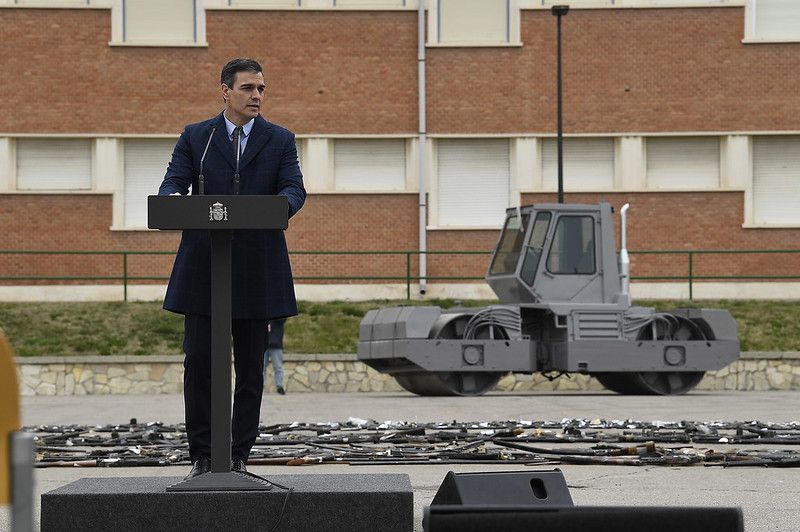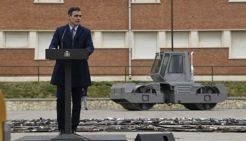 El presidente del Gobierno, Pedro Sánchez, ha defendido la memoria de las víctimas de del GAL, ETA, el Grapo y del yihadismo en un acto simbólico de destrucción de más de 1.300 armas incautadas a organizaciones terroristas celebrado en el Colegio de Guardias Jóvenes Duque de Ahumada de Valdemoro (Madrid) que no ha contado, pese a estar invitados, con la asistencia de los líderes de la oposición ni los expresidentes del Ejecutivo.
