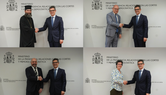 El ministro de la Presidencia, Félix Bolaños, se ha reunido con representantes de estas confesiones para informarle de las condiciones del acuerdo, que no ha sentado nada bien a los socios de investidura del Gobierno. Unidas Podemos, EH Bildu, Más País y Cs se han mostrado en contra de esta decisión, al considerar que supone ampliar la "barra libre". Otros partidos como Vox y PDeCAT están a favor.