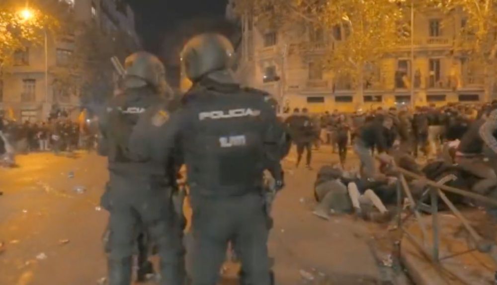 🔥🇪🇸 Spanish forces are said to have withdrawn after attacking protesters. These demonstrations occur every day and seem to be getting more violent.#Ferraz #España #spain #EspañaNoSeRinde #madrid pic.twitter.com/JSvYoIeSy2
