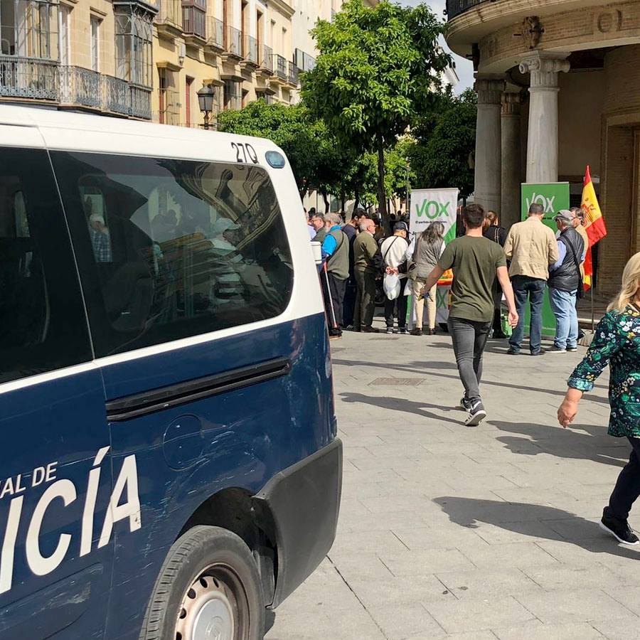 Presencial policial ante el stand de Vox, el pasado martes en Jerez.