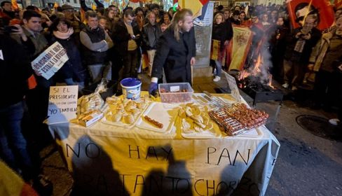 Miembros del referido grupo se han puerto a repartir bocadillos de chorizo y embutidos a algunos de los manifestantes contra la ley de amnistía y los pactos del PSOE con los partidos independentistas. "No hay pan para tanto chorizo" era el mensaje escrito en el mantel de la mesa de la referida barbacoa.