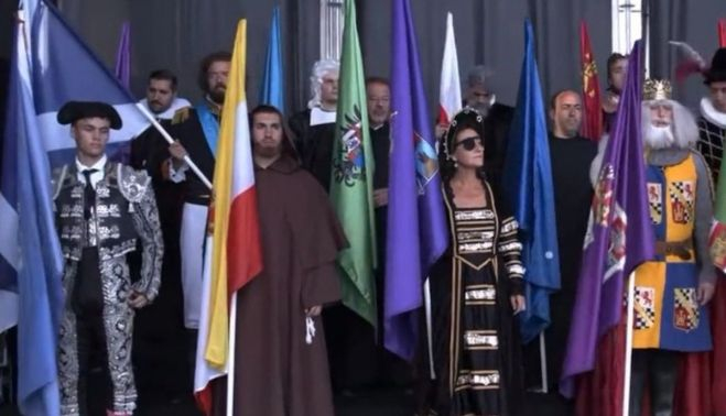 La formación política vuelve a estar en boca de todos por su puesta en escena en un acto al que llaman la gran fiesta Viva 22 en el que se ha montado un auténtico Carnaval. No podían esperar al año que viene y se han adelantado con disfraces de reyes, monjes, toreros, conquistadores, políticos, artistas o científicos. Personajes como Cánovas del Castillo o el almirante Álvaro de Bazán han revivido en esta ceremonia dedicada a la historia de España.
