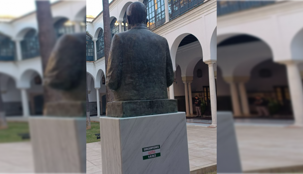 Adelante Andalucía ha denunciado los hechos en sus redes sociales. El busto de Blas Infante, 'Padre de la Patria Andaluza' ha aparecido con una pegatina donde se podía leer "subcampeones 1492", fecha de la conquista de Granada.