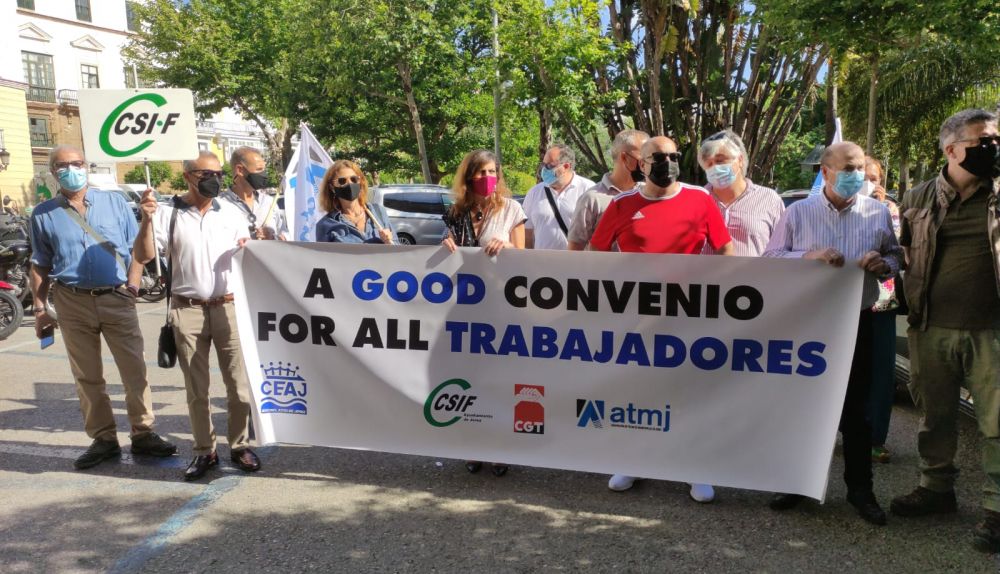 El Comité de Empresa del personal laboral del Ayuntamiento de Jerez se ha manifestado frente a las puertas de Diputación este martes "como continuación de la serie de acciones sindicales aprobadas dentro de su seno". Esta medida reivindicativa tiene como objetivo "protestar por la pérdida de derechos y libertades que lleva a cabo Mamen Sánchez y Laura Álvarez contra los trabajadores del Ayuntamiento de Jerez y que pretende perpetuar a través de nuestro convenio", señalaban.