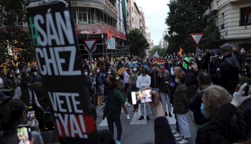 Decenas de personas se han congregado este pasado miércoles en la zona de Núñez de Balboa de Madrid, sin guardar la distancia social exigida, para reclamar la dimisión de Pedro Sánchez al frente del Gobierno por su gestión de la crisis sobre la pandemia del coronavirus al grito de "libertad" y con una sonora cacerolada. Esta protesta colectiva, según los vecinos del barrio de Salamanca, surgió después de que el domingo un grupo de jóvenes se concentrara frente a una vivienda que tenía la música a todo volumen, un incidente que derivó en que 12 personas fueran identificadas y sancionadas por incumplir el real decreto de estado de alarma.