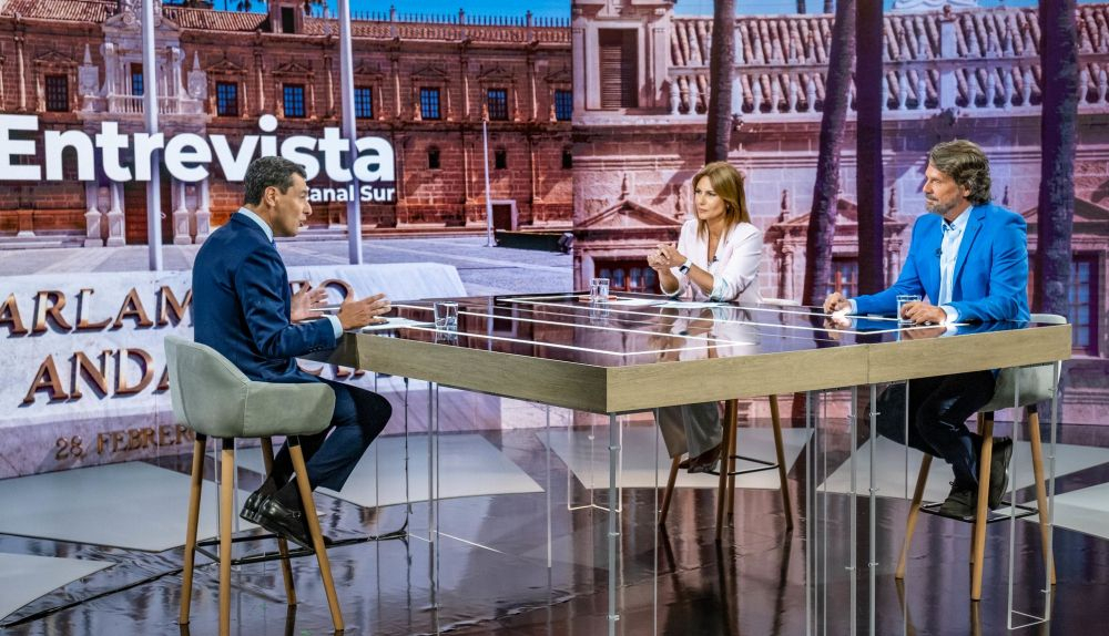 Canal Sur emitió el pasado lunes por la noche, tras su informativo, un espacio denominado La Entrevista de Canal Sur, donde acudió como primer protagonista el presidente de la Junta de Andalucía, Juanma Moreno.