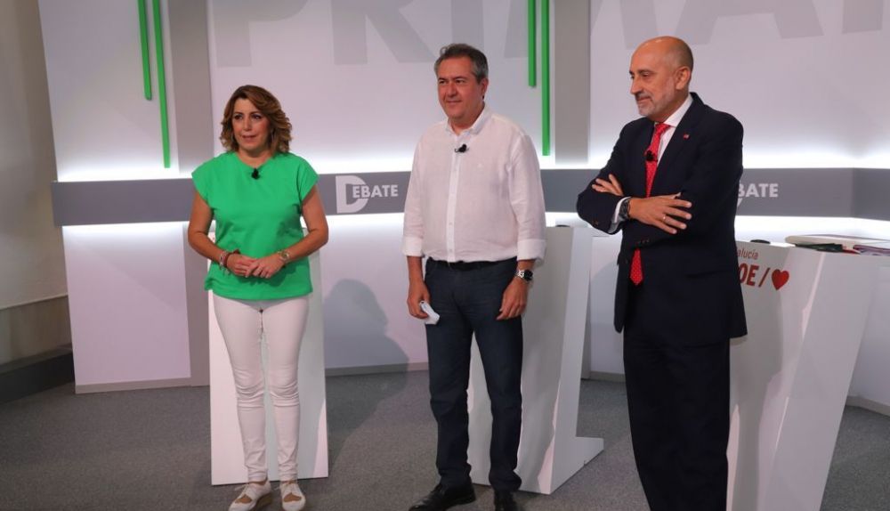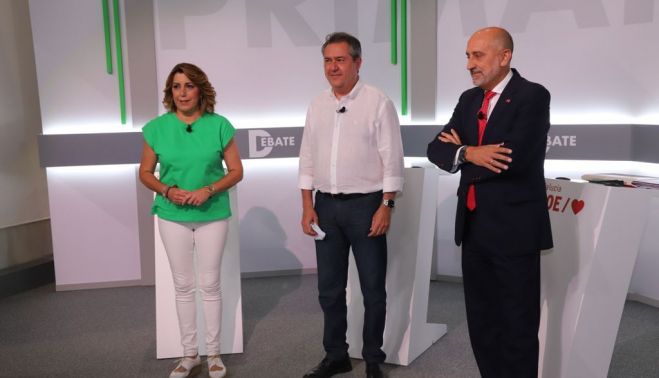 El debate del PSOE-A entre Susana Díaz, Juan Espadas y Luis Ángel Hierro ha dejado una impresión al acabar: las tortas en estas primarias son de guante blanco. Imágenes de bronca que se han dado en otros tiempos en el partido no ha habido, y los candidatos se han ido aferrando a tesis que llevan desplegando toda la campaña. Susana Díaz, como secretaria general -seguirá siéndolo oficialmente después del domingo porque la elección es a candidato a la Junta, no a la dirección- se ha mantenido en un perfil institucional. De entre los detalles, puede llamar la atención que haya señalado a Jaén y a Huelva como las dos provincias que más infraestructuras necesitan. Espadas, quien lideró en avales, ha tejido su propuesta sobre los porqués de la derrota de 2018, aludiendo a que el PSOE necesitaba escuchar. Hierro, por su parte, es el que más guerra dialéctica ha generado e incluso se le vio torcer el gesto cuando el alcalde de Sevilla quiso presumir de políticas sociales.