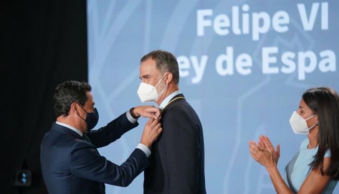 El Rey Felipe VI ha recibido la Medalla de Honor que le ha entregado el presidente de la Junta de Andalucía, Juan Manuel Moreno Bonilla, declarándose "un andaluz más entre los andaluces" y agradeciendo "muy sinceramente el cariño que los andaluces siempre habéis expresado y demostrado a lo largo de los años a toda mi familia, y que responde a un sentimiento espontáneo y sincero, fruto de la lealtad y de la confianza con las que siempre nos habéis distinguido". A continuación, puedes leer el discurso completo de Felipe VI.