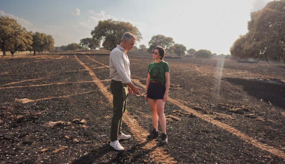 Unas 2.000 hectáreas se han quemado en este punto de Madrid, desde el que Ayuso ha pedido ha llamado a aparcar las polémicas y "colaborar" y "ayudar" ante la ola de fuegos en el país.
