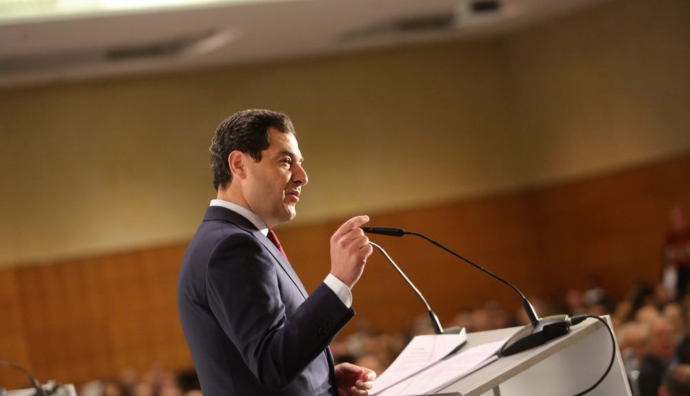 El presidente andaluz ha manifestado que el Gobierno Andaluz tiene como objetivo hacer de Andalucía "una tierra que inspire confianza para invertir, para crear una empresa y para instalar una industria". De esta forma, ha apostillado que ya se han colocado 700 millones en deuda a siete puntos básicos menos que en 2018, algo que supone una señal inequívoca de que los mercados tienen confianza en Andalucía y en el Gobierno del cambio.