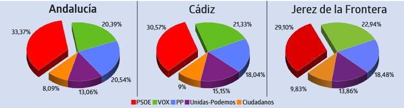 Resultados en Andalucía, la provincia de Cádiz y Jerez, con el 100% escrutado.
