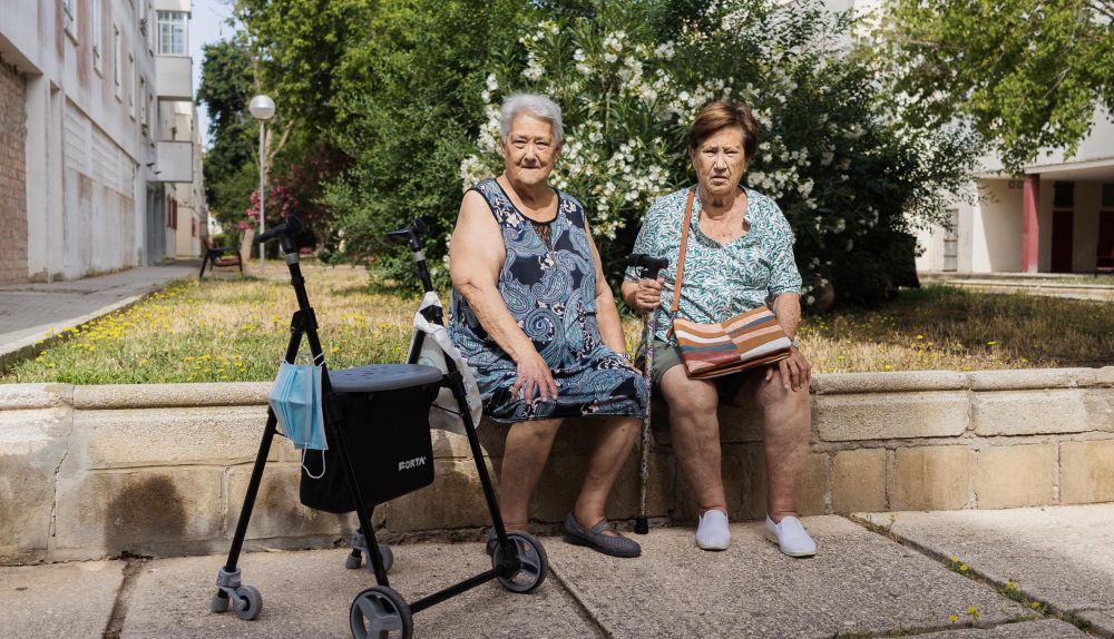 Por senderos que discurren entre unos bloques van andando las hermanas Isabel y Carmen Rubio, ambas octogenarias. Isabel reside en el Río San Pedro, su hermana lleva más de 50 años en Barcelona, aunque ahora está de visita. "¿De qué vais a escribir, de que hay mucha mierda, no?", se arranca la primera. Cuando se entera de que la crónica va sobre las elecciones andaluzas, no tarda en confesar el sentido de su voto. "Voy a votar por los verdes, por mi perro", dice, en referencia a Pacma. "Para no darle el voto a ningún ladrón...", añade. "No creo en ninguno pero quiero seguir votando. Eso es lo que hay", remacha Isabel, empuñando su andador y siguiendo su camino.