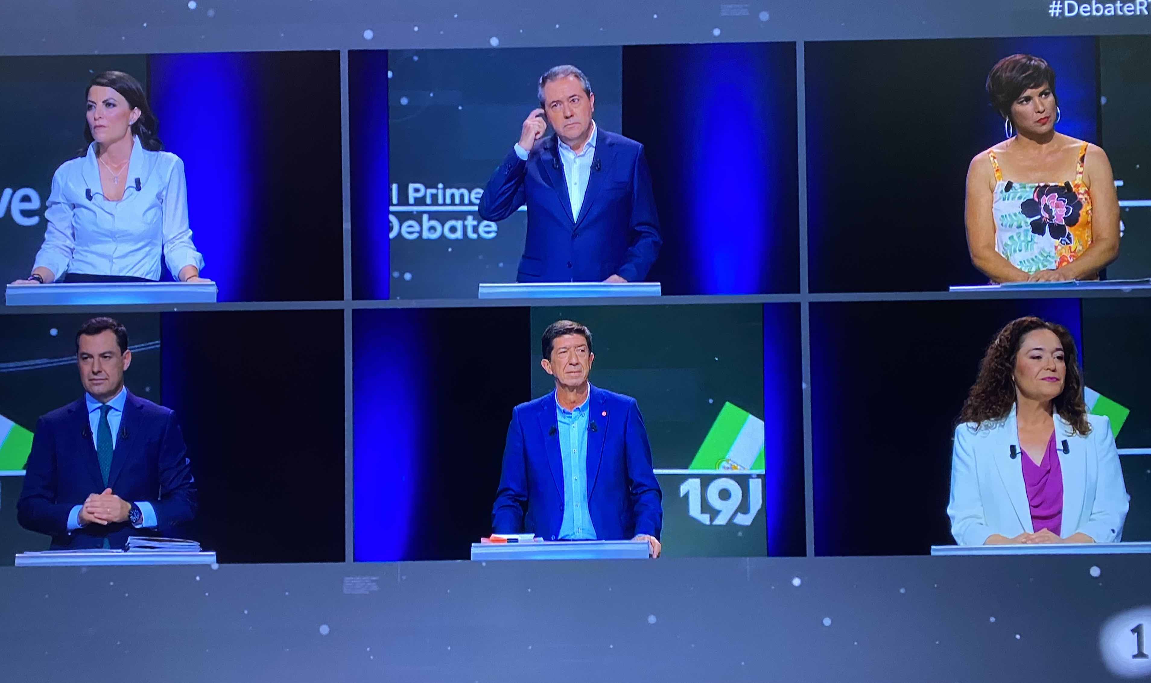 En el último bloque —retos territoriales, financiación autonómica, regeneración democrática y pactos postelectorales— se hizo más política ficción que realpolitik. La diferencia en el horizonte de las izquierdas al PSOE quedó patente ante la gestión de los fondos europeos. Mientras que Por Andalucía hablaba desde un perfil correcto y de gestión estrictamente política, Adelante Andalucía aprovechó para mencionar la subalternidad económica de Andalucía y la falta de industrialización, apuntando también hacia Madrid.