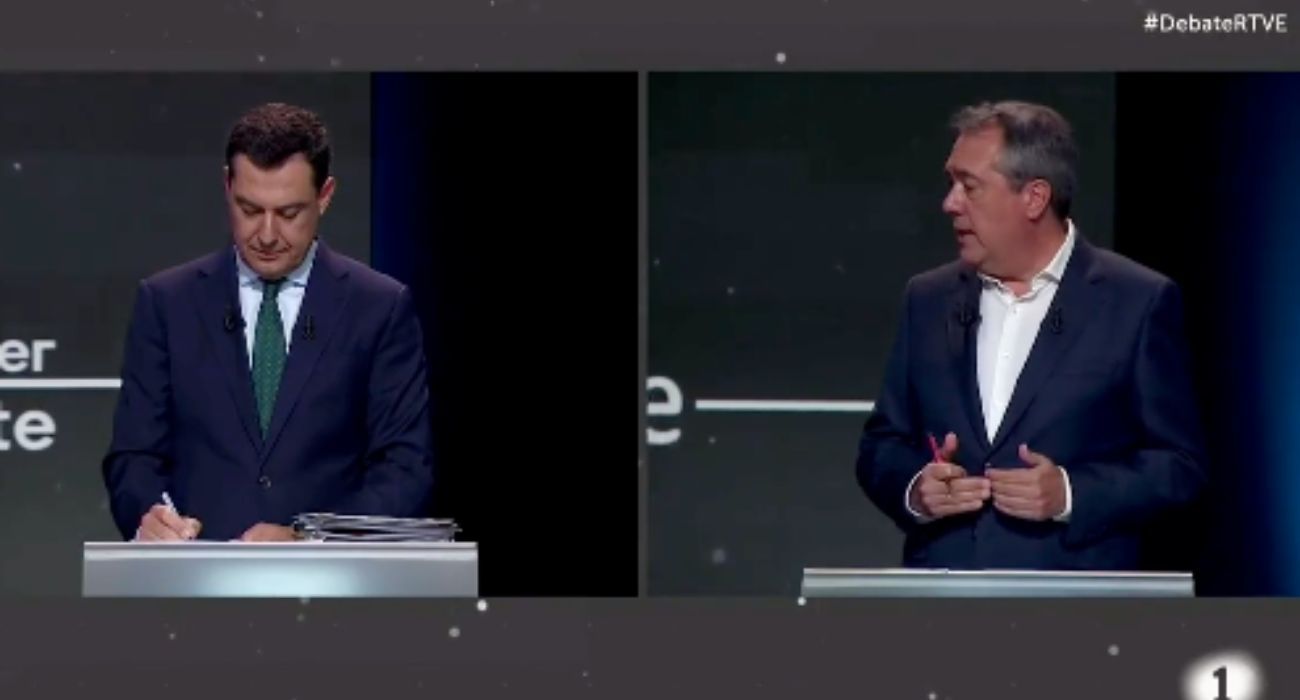 Macarena Olona, candidata de Vox a la Junta de Andalucía, ha buscado permanentemente el cuerpo a cuerpo con Moreno Bonilla en el primer debate a seis de las elecciones andaluzas del próximo 19J.