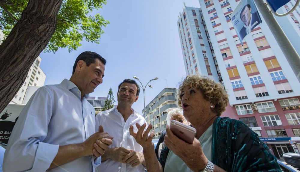 Nada más comenzar el recorrido electoral, una vez acabado el corro con los medios, pidió la palabra una mujer mayor ataviada con un andador. Esos complementos han aparecido por centenares en la ciudad -ya con uno de cada cuatro habitantes por encima de los 65 años- en los últimos diez años. La anciana le reprochó al presidente de la Junta que el SAS haya dejado de costear el calzado ortopédico que necesita, sólo un año después de que le aprobasen la ayuda. "Me voy a interesar por eso, esté usted segura", contestaba Moreno en una exhibición de la campechanía hecha marca personal.
