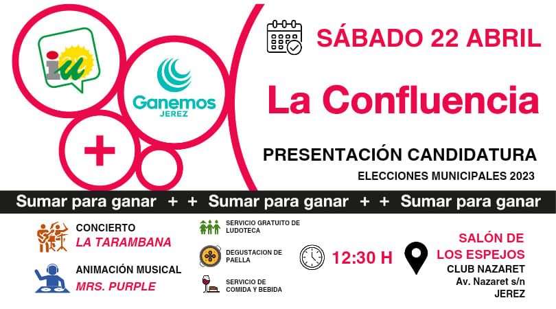En este sentido, Izquierda Unida + Ganemos Jerez —La Confluencia—, se presentan a estas elecciones municipales "con la clara vocación de gobernar y con el objetivo de poner en marcha políticas públicas más valientes y transformadoras". La trayectoria institucional de ambas formaciones demuestra, a su juicio, "la capacidad de desarrollar y ejecutar propuestas positivas para Jerez desde la oposición, que se multiplicarán exponencialmente desde el gobierno municipal a partir del próximo 29 de Mayo. La Confluencia se presenta con el objetivo de sumar para ganar y con un proyecto ilusionante de futuro".