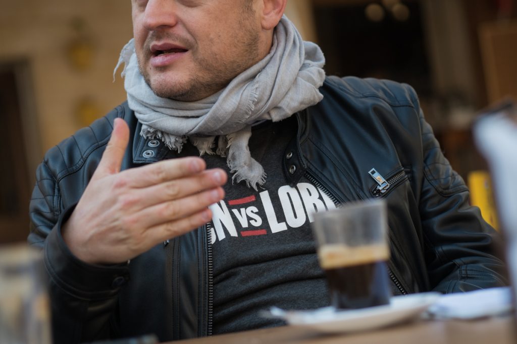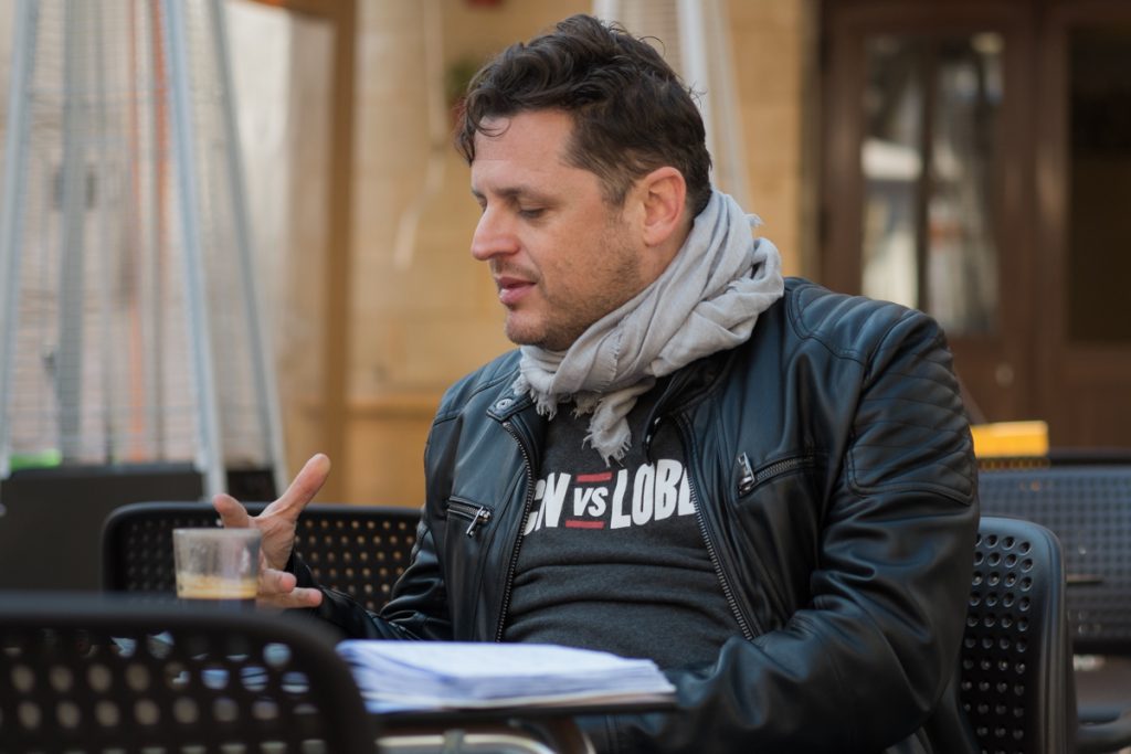 El portavoz de Barcelona en Comú durante el encuentro con lavozdelsur.es. FOTO: MANU GARCÍA.