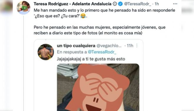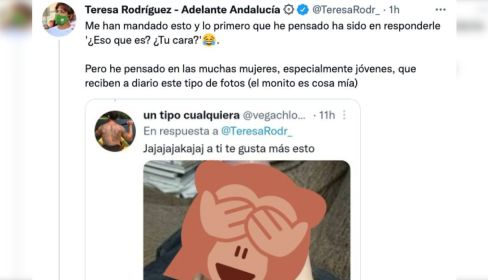 "Me han mandado esto –sobre la fotografía que ha recibido– y lo primero que he pensado ha sido en responderle '¿Eso que es? ¿Tu cara?'. Pero he pensado en las muchas mujeres, especialmente jóvenes, que reciben a diario este tipo de fotos", ha señalado Rodríguez en sus redes.